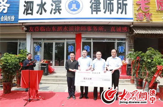 大众网济宁4月26日讯 4月21日,泗水滨律师事务所正式揭牌成立。在这喜庆的日子里,该律师事务所决定把准备搞庆典的一万元活动经费通过泗水县微公益协会帮扶泗水贫困儿童,受到当地人民的一致好评。