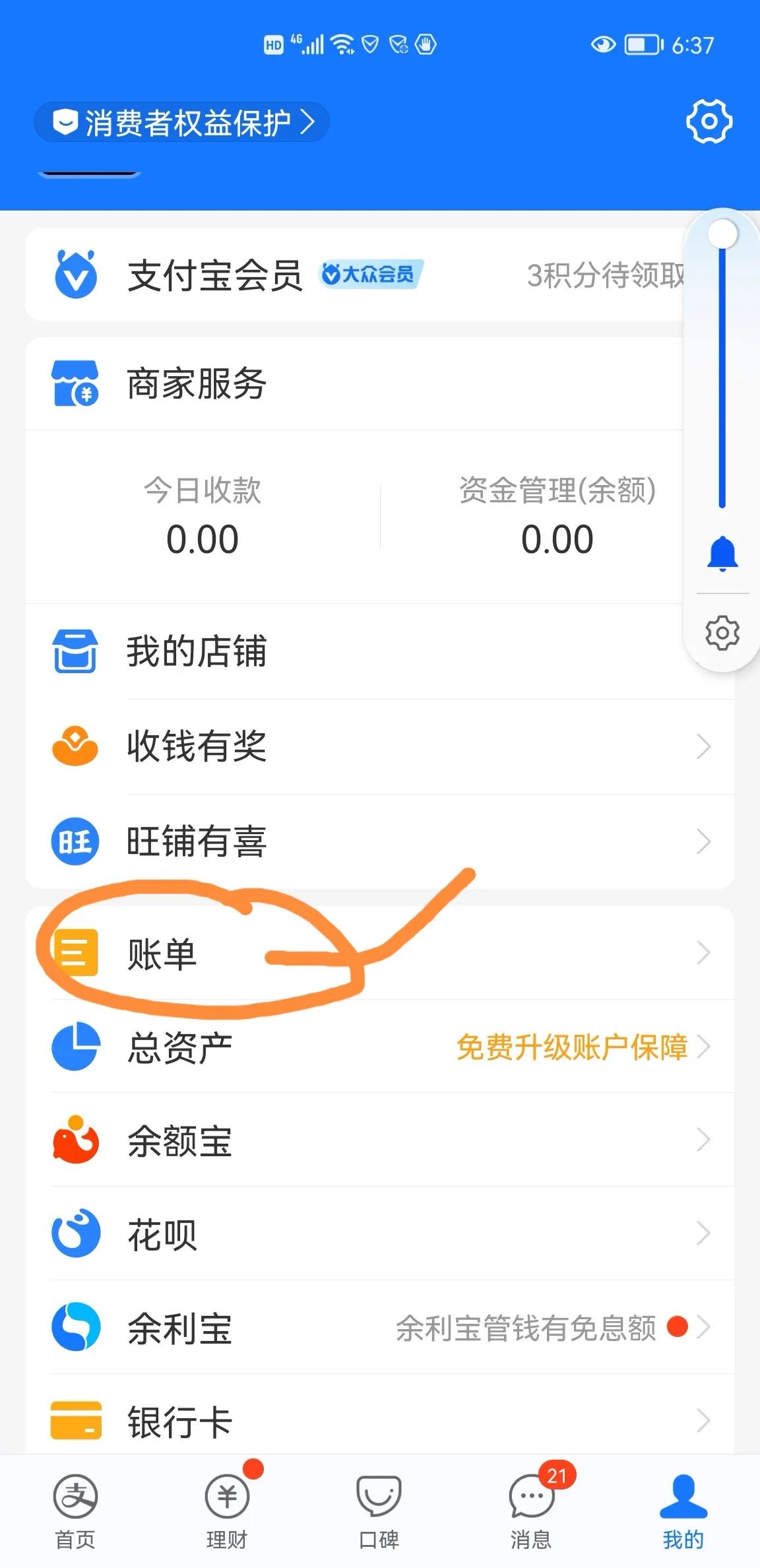 查找支付宝账单步骤(微信账单步骤相同),点击按照提示步骤操作即可